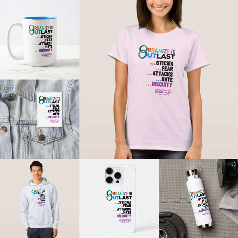 A great way to show your support for health equity during LGBTQ Health Awareness Week, and throughout the year, is by visiting the online shop where “Organize to Outlast” merch is available, and selecting the item or items that best fit your style and activities. Pick something for you, pick up something for a friend!