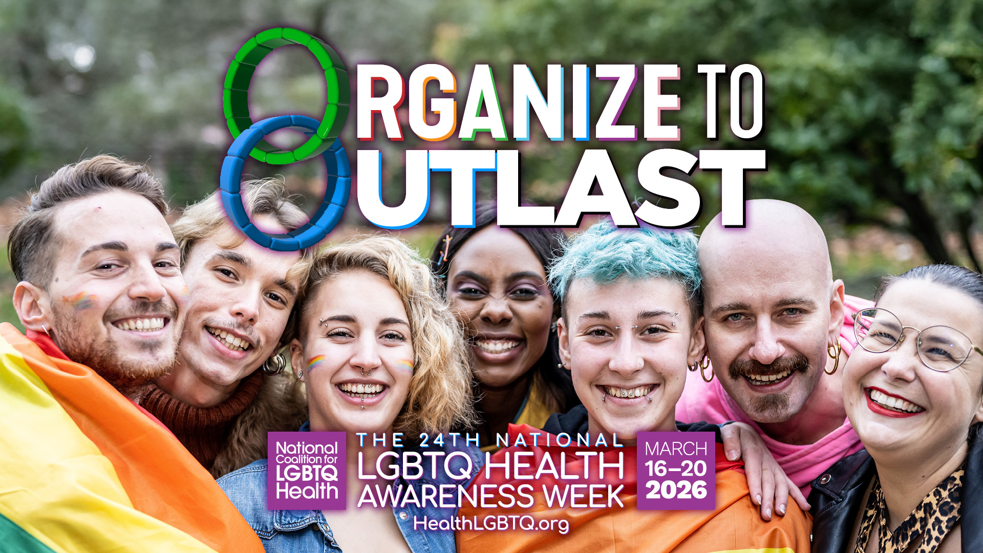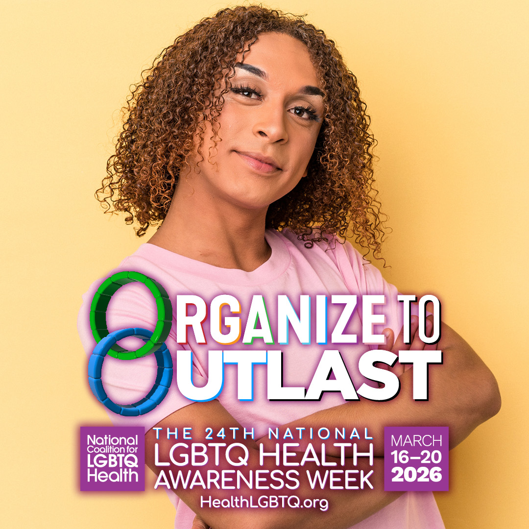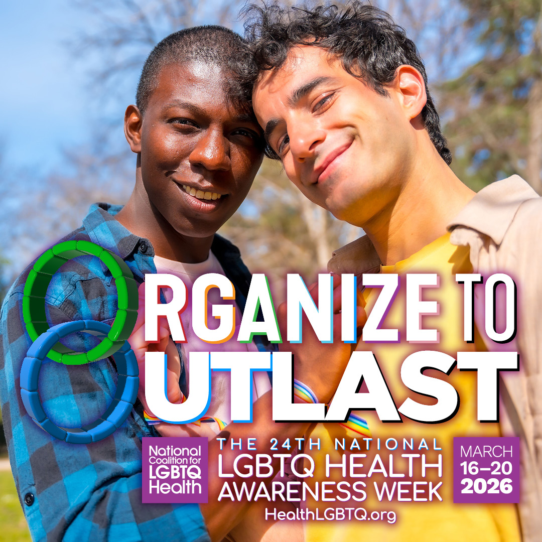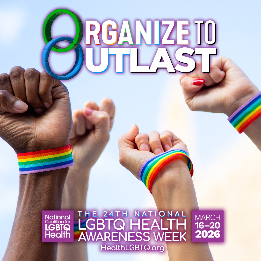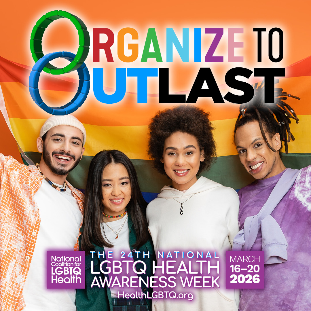 The National Coalition for LGBTQ Health announces that the theme for this year’s National LGBTQ Health Awareness Week, being held March 16 – 20, 2026, is “Organize to OUTlast.” The theme calls on the LGBTQ community and those who provide healthcare for LGBTQ communities to organize for LGBTQ health against regressive forces in policy and culture. The Coalition created the National LGBTQ Health Awareness Week 24 years ago to raise awareness about timely and relevant issues impacting LGBTQ healthcare.