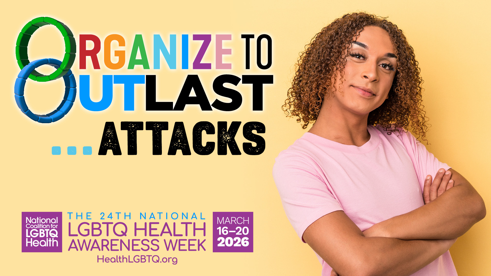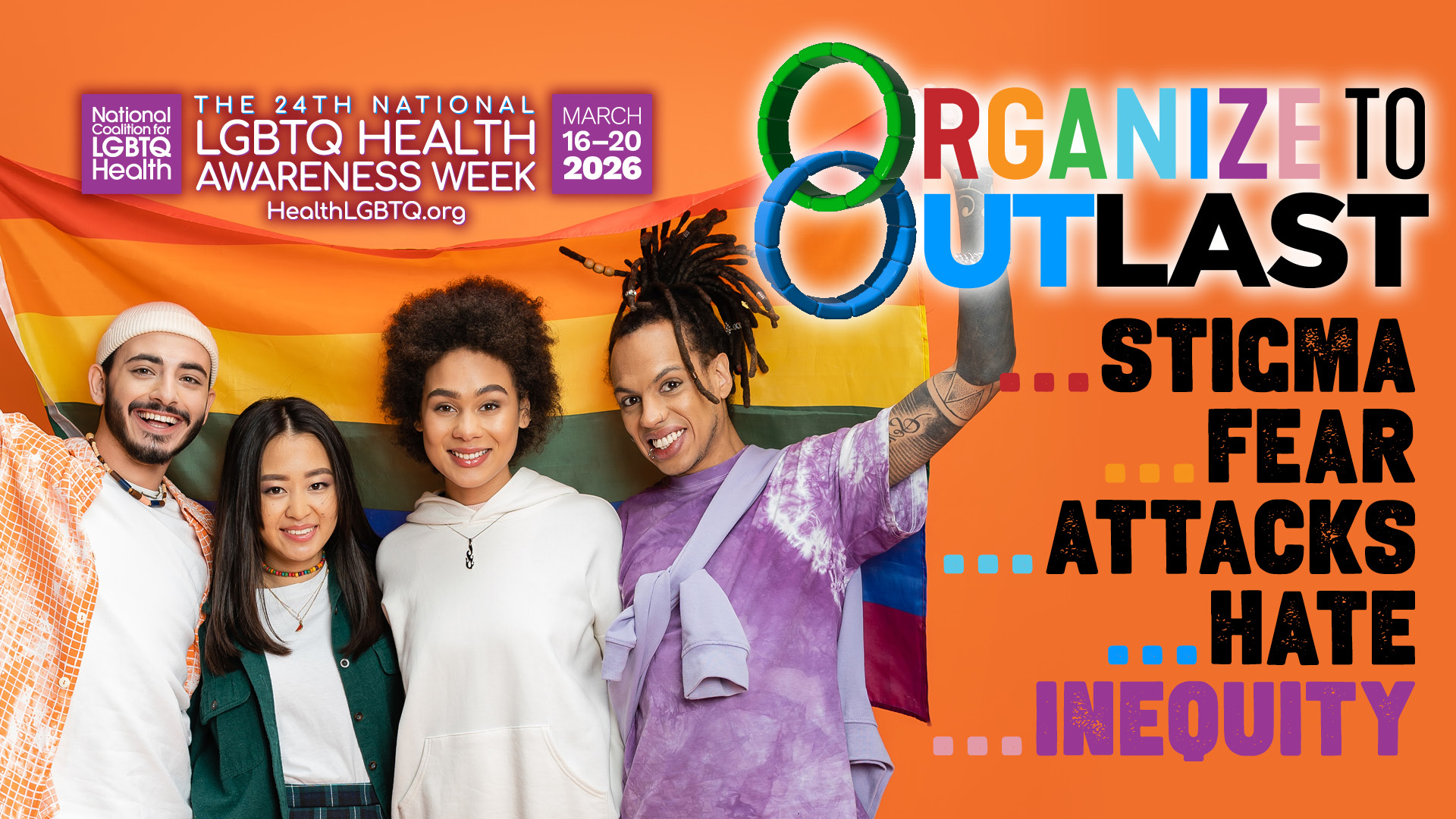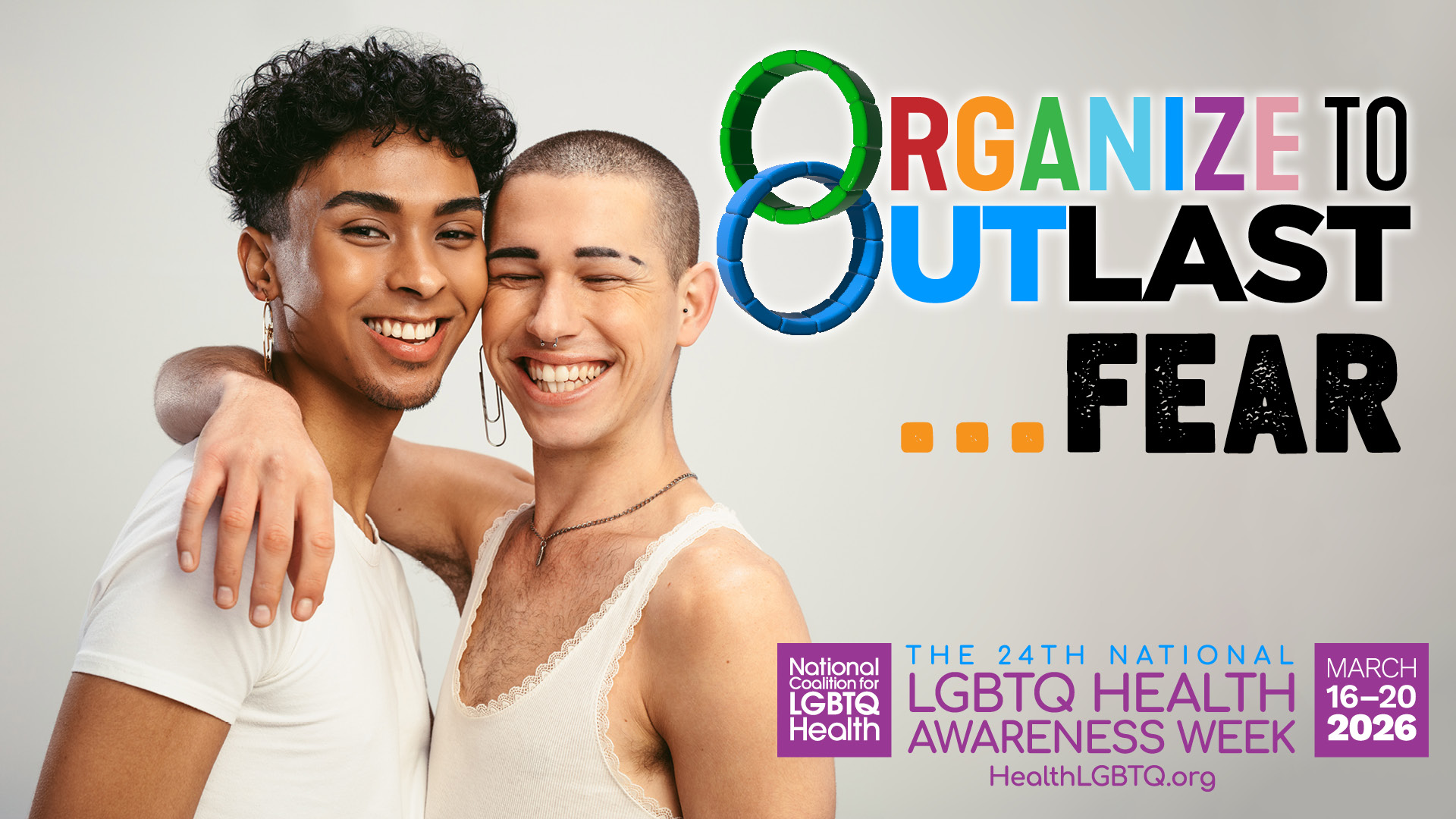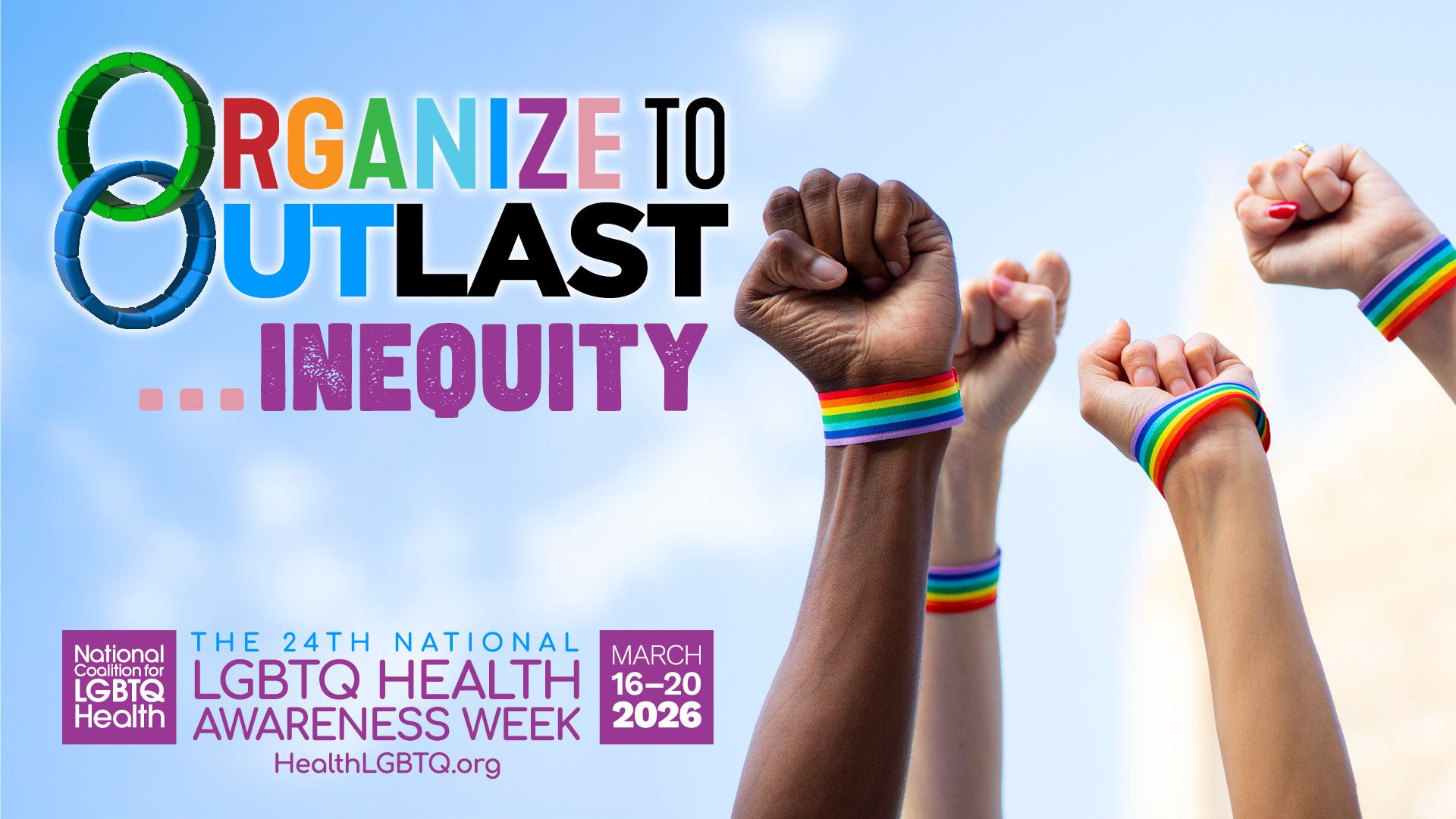 The National Coalition for LGBTQ Health announces that the theme for this year’s National LGBTQ Health Awareness Week, being held March 16 – 20, 2026, is “Organize to OUTlast.” The theme calls on the LGBTQ community and those who provide healthcare for LGBTQ communities to organize for LGBTQ health against regressive forces in policy and culture. The Coalition created the National LGBTQ Health Awareness Week 24 years ago to raise awareness about timely and relevant issues impacting LGBTQ healthcare.